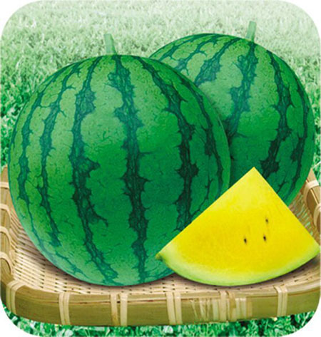 极早熟,优质小型礼品黄瓤西瓜。果实发育期24天左右。果实圆型,花皮覆有清晰的绿色条带,瓜瓤黄色,